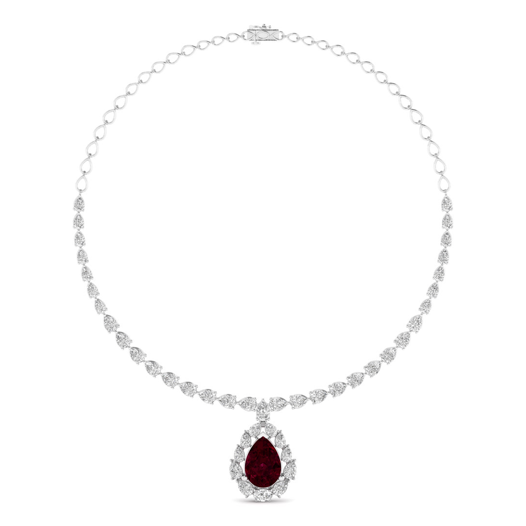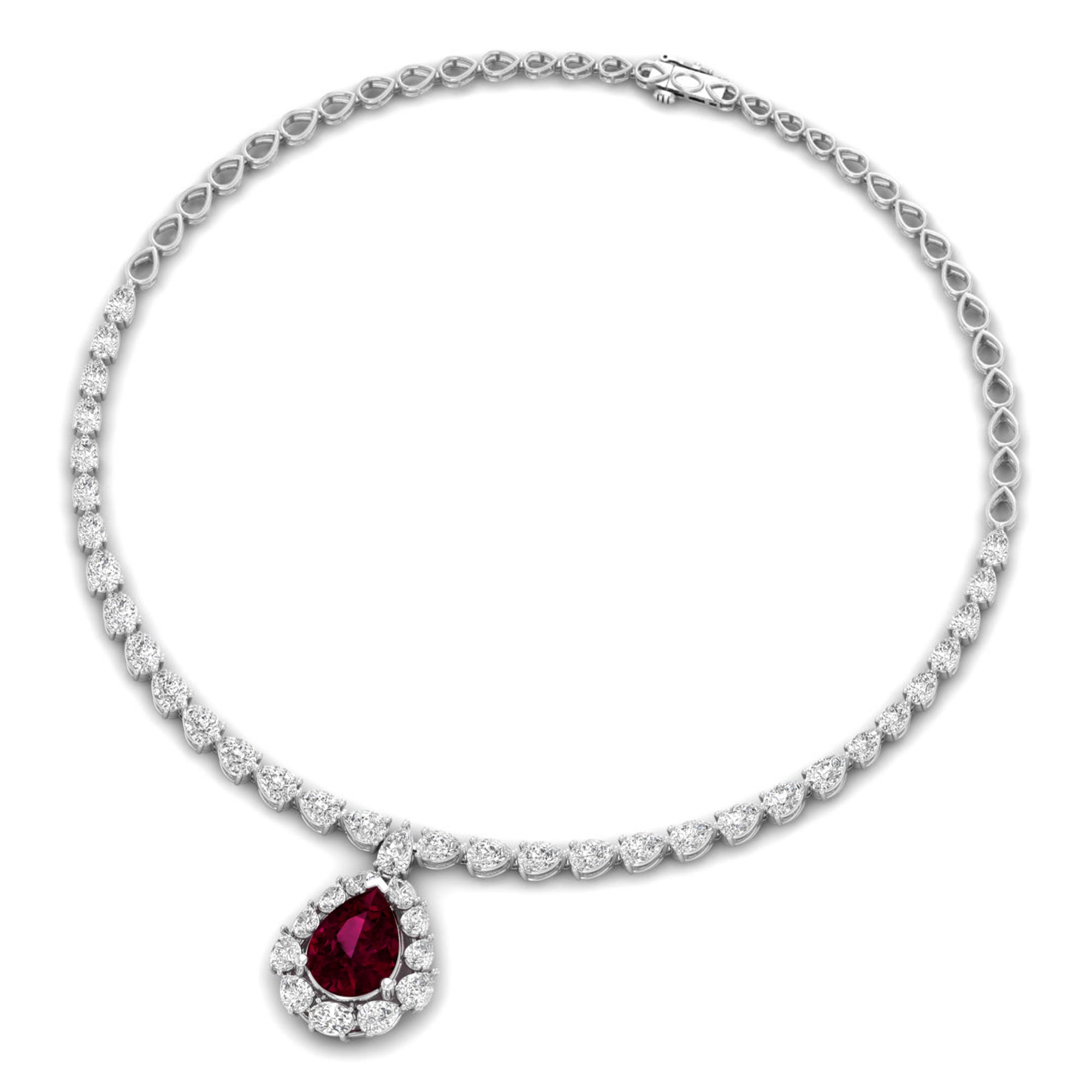 Wine red teardrop diamond heavy necklace
