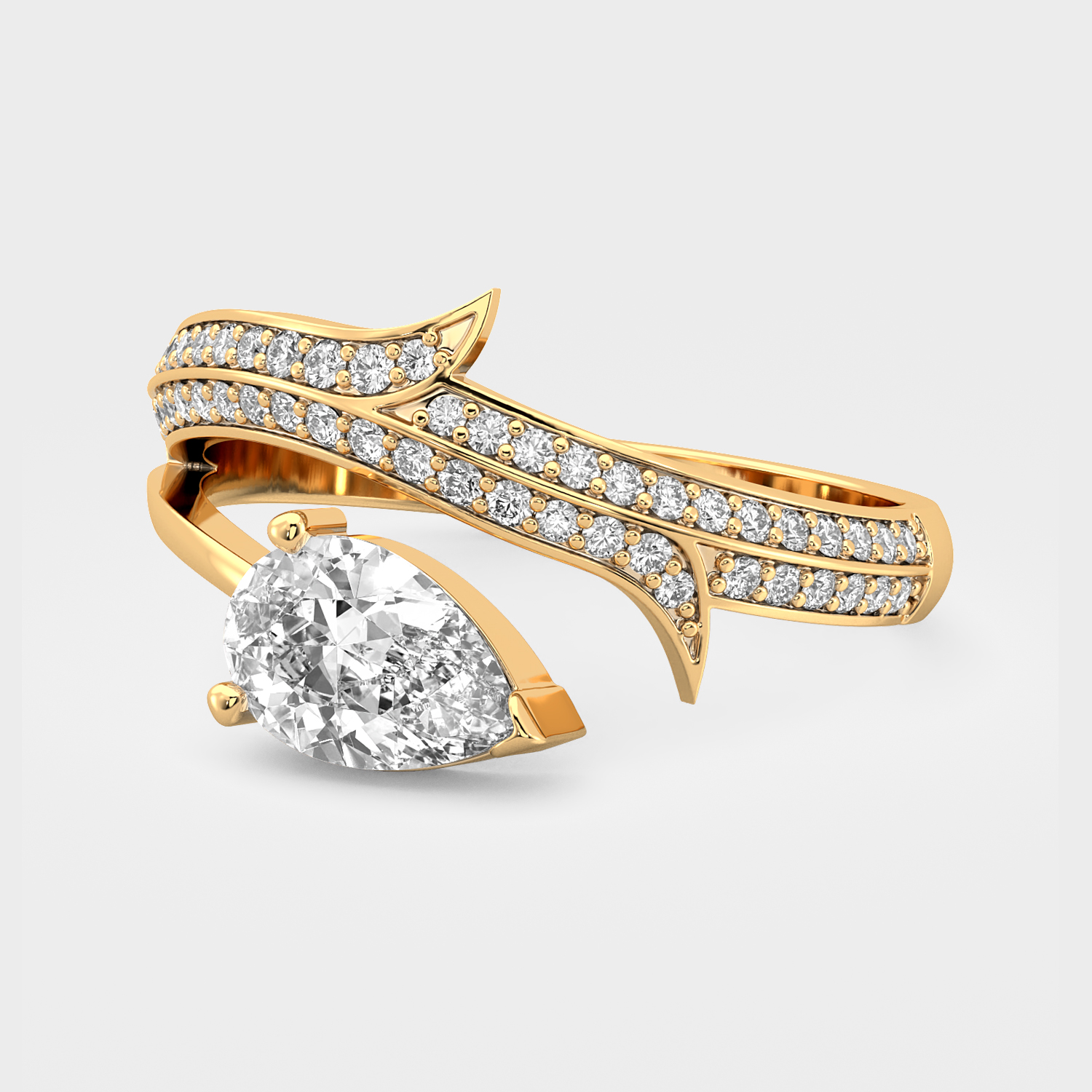 "G14K or 18K Gold, 0.77 Ctw with FG, VS quality Lab Grown Diamond PEAR CUT RING"